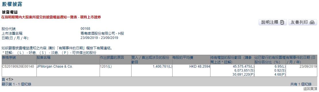 智通财经APP获悉,联交所最新资料显示,9月23日,摩根大通减持青岛啤酒(00168)