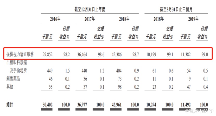 其中全飞秒激光手术和三焦点晶体置换手术为公司提供了主要的收入,截至2018年,这两项手术业务收入占整个视力矫正服务业务的73.1%。因此这两项业务的收入变动会对公司整体收入产生较大影响。