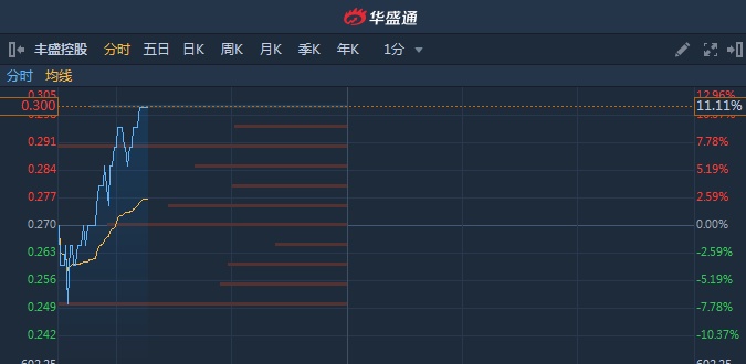 智通财经APP获悉,市场再炒细价股!丰盛控股(00607)涨势延续,上周五(9月27日)曾收涨28.57%,截至10时15分,涨11.11%,报价0.3港元,成交额1784万。