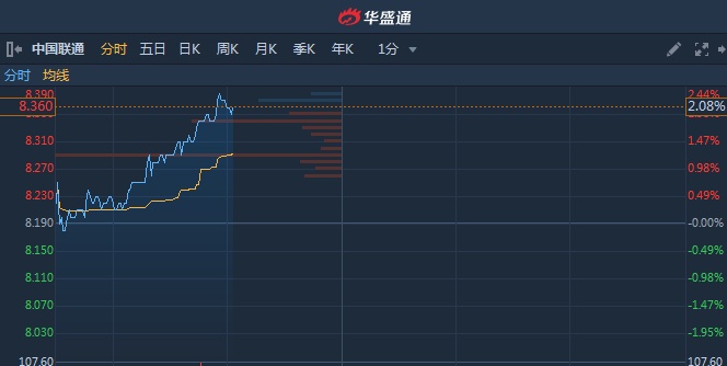 智通财经APP获悉,中国联通(00762)正式开启5G套餐预约,刺激股价快速走高,截至11时02分,涨2.08%,报价8.36港元,成交额5237万。