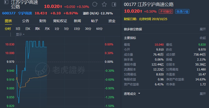 该行又指出,在减息周期下,公司维持良好并持续的派息(股息回报率约5%),属吸引水平。此外,虽然物业销售和辅助服务可能在今年下半年持续波动,但对公司盈利影响有限。该行表示,宁沪高速公路目标价由12港元升至12.7港元,评级“买入”,并将公司2019及2020年盈利预测分别上调7%及9%。