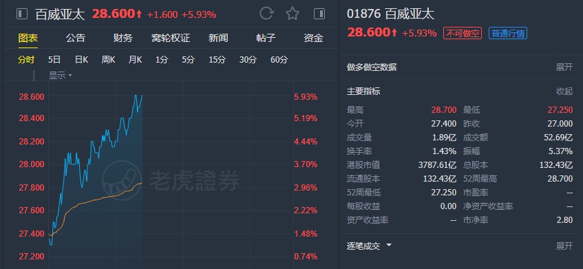 该行又提到,百威在其他亚太市场预计可见强劲增长,公司为韩国最大的啤酒企业,去年的市场占有率达60%并拥有良好定位。至于印度和越南市场虽然仍相对较小,但公司打算通过自然增长及进行收购,在此等现有市场实现快速增长。