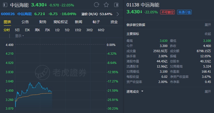 该行表示,维持中远海能H股及A股“跑赢大市”评级,及维持盈利预测不变,但由于投资者风险胃纳受影响,故将H及A股目标价分别降低25%和17%,各至4.8港元和7.76元人民币。