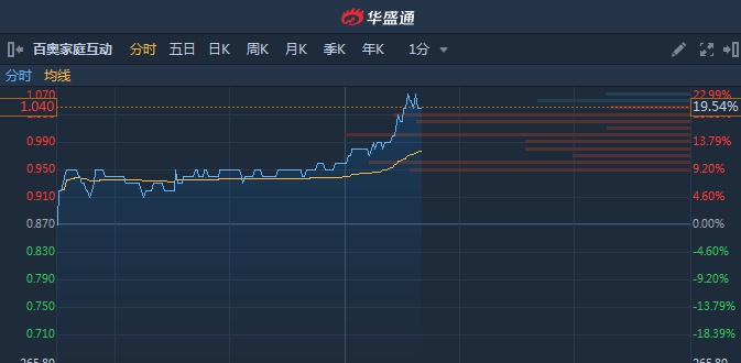 港股异动︱百奥家庭互动(02100)午后放量急升20% 创逾四年新高