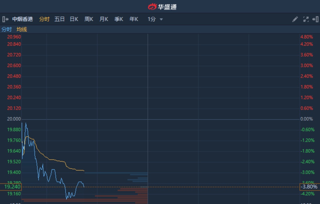 港股异动︱中烟香港(06055)再挫3.8%跌破20港元