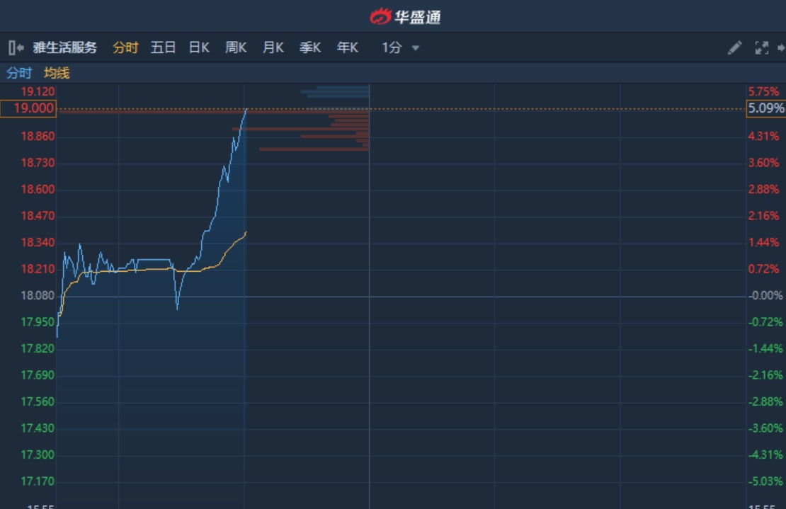 智通财经APP获悉,雅生活服务(03319)获高盛重申“买入”评级,目标价看高至25港元,截至11时00分,涨5.09%,报价19港元,成交额6831万。值得注意的是,该股盘中高见19.08港元,创历史新高。