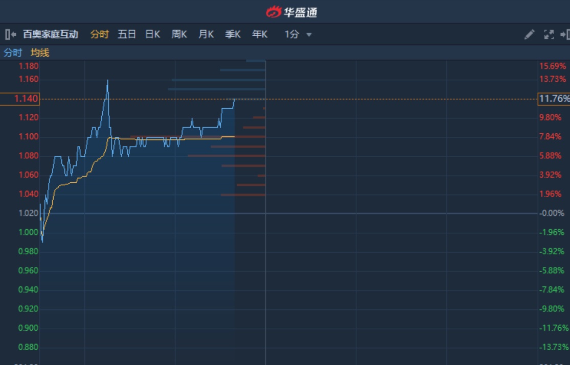 港股异动︱百奥家庭互动(02100)午后放量急升20% 创逾四年新高