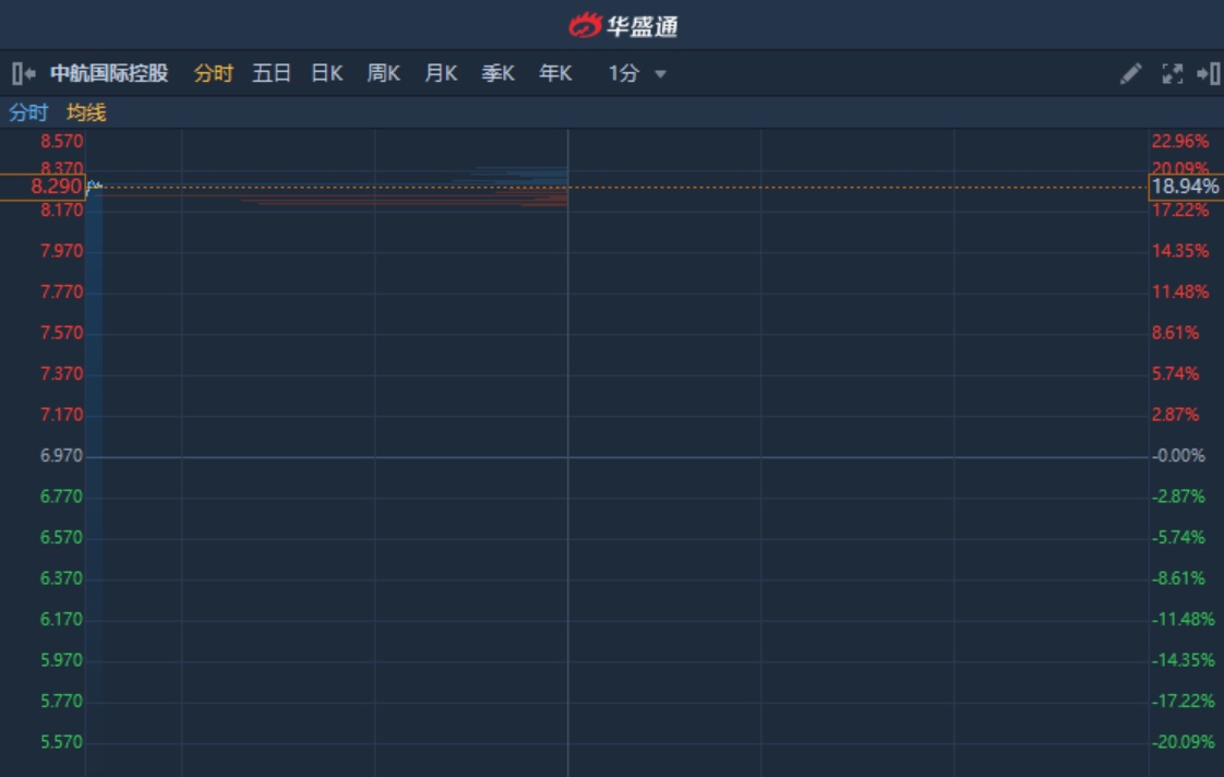 智通财经APP获悉,中航国际控股(00161)昨日晚间公告称,H股获控股股东中航国际溢价约29.12%提全购,今日复牌,股价跳空高开,截至9时20分,涨18.36%,报价8.25港元。
