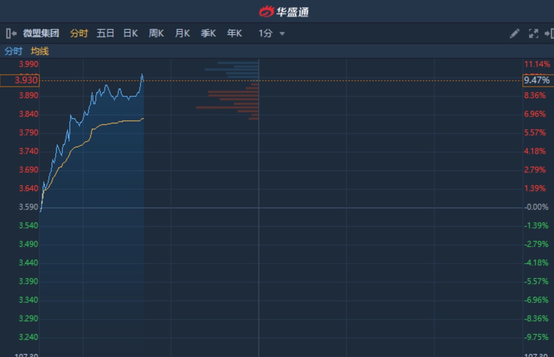 智通财经APP获悉,微盟集团(02013)回购计划提振市场信心,涨幅持续扩大。截至10时40分,涨9.47%,报价3.93港元,成交额3577万。