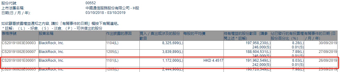 智通财经APP获悉,联交所最新资料显示,9月26日,贝莱德增持中国通信服务(00552)117.2万股,每股作价4.4517港元,涉及总金额约为521.74万港元。
