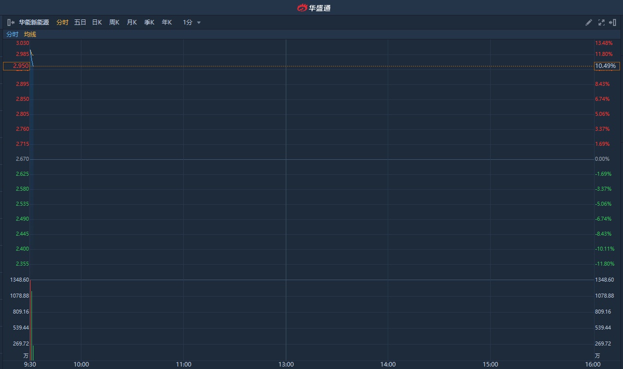 智通财经APP获悉,华能新能源(00958)公告称,获母公司中国华能集团以每股现金3.17元提出要约全购,今日复牌。截止发稿,涨11.24%,报2.97港元,成交额8052.93万港元。