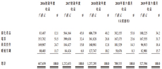 于往绩记录期间,雾化产品逐渐成为公司的主要收入来源,2018年的收益占比为48.2%,依次还有电器、商业控件及暖通空调,收益占比分别为28.8%、12.8%及10.2%。