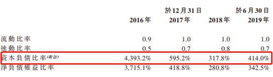于往绩记录期间,公司的资产负债比率高企,分别是4393.2%,595.2%,317.8%和414%,负债状况有所改善。