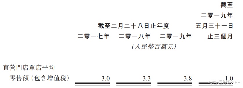 零售门店如此密集的关闭,并不是一个好兆头,但智通财经APP发现,滔搏的单店平均销售额却是逐渐增加的,从2017财年的300万元增至2019财年的380万元。且2020财年第一季度为1百万元,相当于全年400万元,说明在这三个月内,直营门店的单店销售额同比也是增长的。