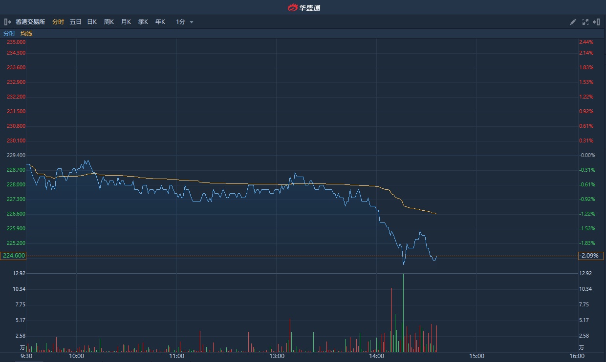 智通财经APP获悉,伦交所的主要股东要求港交所(00388)最少增加收购作价20%及提高现金比重,才可能支持其收购建议。港交所午后随市走软,截止发稿,跌2.18%,报224.4港元,成交额4.87亿港元。