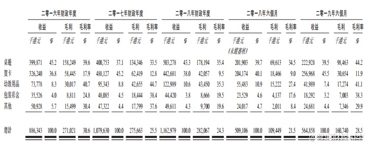 2018年六个月及2019年六个月,收益分别为509.1百万港元及 564.9百万港元,同比增长11.0%。该增加乃主要由于(i)贺卡收益由2018年六个月 的204.2万港元增加52.8百万港元或25.9%至2019年六个月的257.0百万港元;及(ii) 桌游收益由2018年六个月的201.9百万港元增加21.0百万港元或10.4%至2019 年六个月的222.9百万港元,而幼教用品收益由2018年六个月的55.5百万港元减少 13.5百万港元或24.3%至2019年六个月的42.0百万港元,抵销了部分上述的增长。