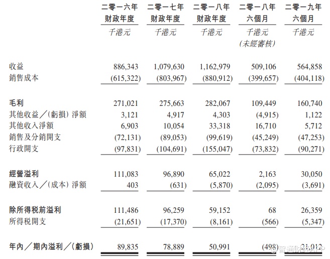 2017年财政年度及2018年财政年度的净溢利分别为78.9百万港元及51.0百万港元,同比下降35.4%。