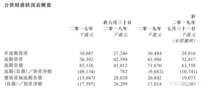 二零一九年六月三十日,集团录得净资产状况约17.0百万港元,净资产状况减少乃主要由于(i)集团附属公司向其当时股东派付中期股息及(ii)收购非控股权益,惟部分由年内溢利所抵销。