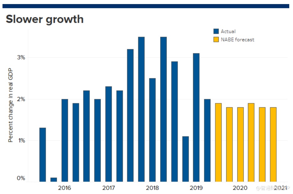 同时,密歇根大学消费者调查组织上个月表示,担心外围局势的消费者人数创下记录。美国全国商业经济协会(National Association of Business Economics)预计,明年美国经济将增长不到2%,这将是自2016年以来美国经济增长最慢的速度。