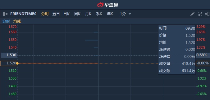 智通财经APP获悉,FRIENDTIMES(06820)首日挂牌,发行3.3亿股,发售价每股1.52港元,每手2000股,所得款项净额约4.5亿港元。截至9时20分,平开,报价1.52港元,成交额1607.66万。