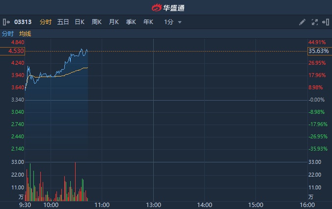智通财经APP获悉,雅高控股(03313)继上周五收涨30%后,今日早盘再涨超37%。截至发稿,涨36.23%,报4.55港元,成交额2697.45万港元。