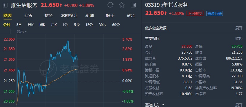 该行认为公共物业管理应较住宅物业管理有更高估值,因为其表现不受物业周期影响,而利润相对稳定,加上入场门槛高且品牌形象正面。该行提升了对雅生活的盈利预测,目标价由17.1港元升至26.9港元,评级“买入”。