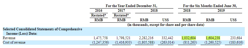 财务方面,2018年公司总营收为22.822亿元人民币(约合3.324亿美元),同比增长27%;净利润为1.04亿元(约合1520万美元),去年同期为65万元人民币,同比增长近160倍。