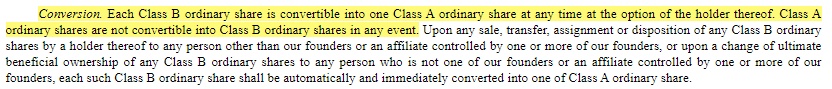公司将采用双股权结构。A类和B类普通股旨在转换权和表决权上有所不同,其中A类普通股不可转换为B类普通股,但B类可以转换为A类。美股A类普通股含1股投票权,B类普通股含10股投票权。