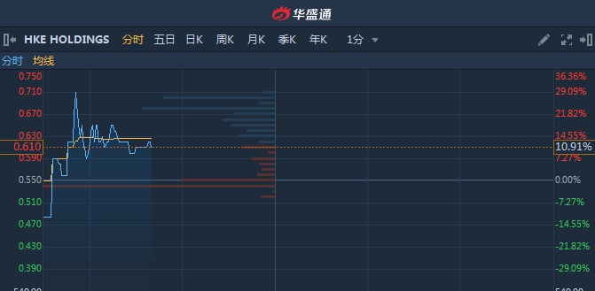 智通财经APP获悉,HKE HOLDINGS(01726)近日发布年度业绩,溢利同比增157.68%至226.26万新加坡元,胜市场预期。截至10时39分,涨10.91%,报价0.61港元,成交额2362万。