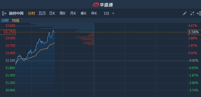 智通财经APP获悉,融创中国(01918)昨日盘后发布9月份销售数据,合同销售金额同比增18%至629.1亿人民币。消息助力股价持续上扬,截至10时44分,涨3.58%,报价33.25港元,成交额2.285亿。