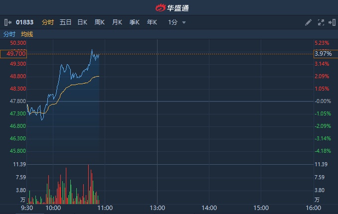 智通财经APP获悉,平安好医生(01833)近期持续获北水加仓,今日港股通持股比例达2.61%,早盘放量涨逾4%。截至发稿,涨3.66%,报49.55港元,成交额1.22亿港元。