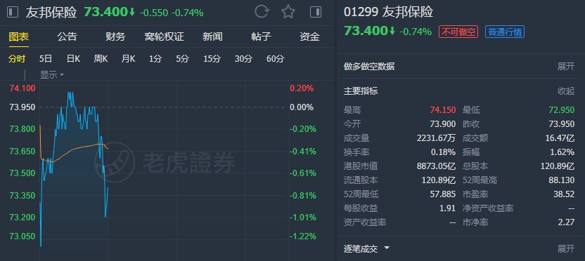 该行称,下调友邦(01299)下半年香港新业务价值预测,预计下半年将同比倒退9%,明年上半年仅轻微反弹9%。整体新业务价值增长预计于今年下半年及明年上半年分别放缓至7%及15%。