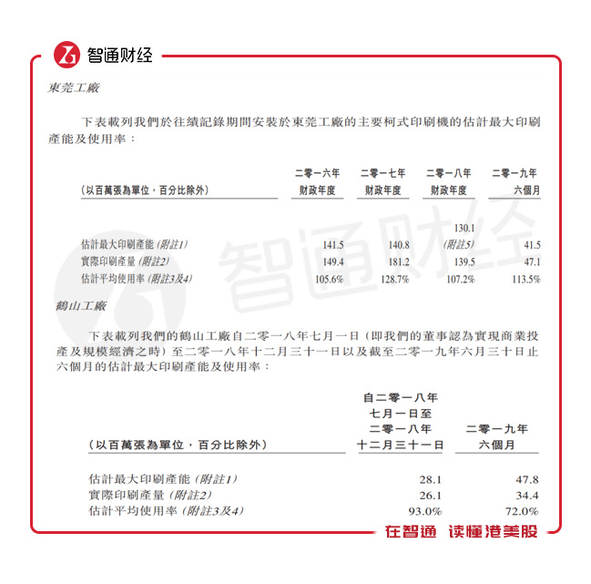 值得注意的是,该公司在鹤山工厂并未直接购买生产设备,而是将东莞工厂的设备搬过去,于2018年10月开始搬运,搬运的生产机器为105部,印刷产能8230万张,已经搬运的产能为6510万张。基本上,鹤山工厂把东莞工厂的大部分产能设备都给搬过去了。