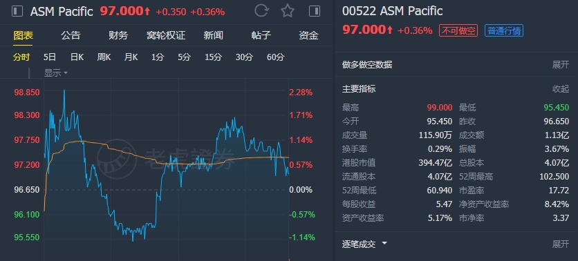 该行表示,下调对ASM太平洋今年净收益预测21%至13亿港元,以反映短期不明朗因素,但同时上调对明年净收益预测11%至23亿港元。