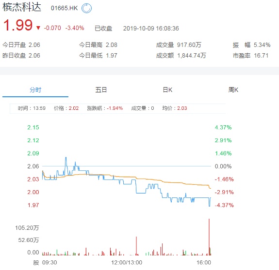截至今日收盘,槟杰科达跌3.4%,报1.99港元。