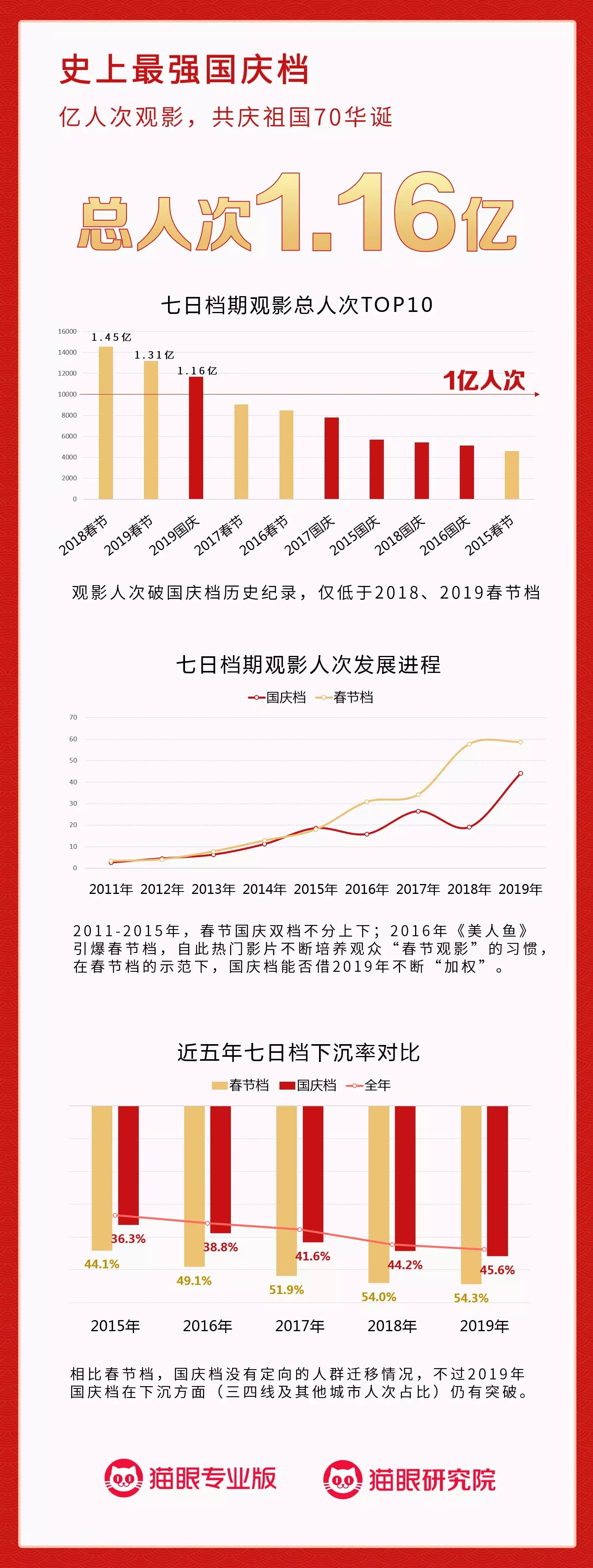 从今年国庆档的观影人次就可以看出,观众的观影热情被调动起来,7天总人次达到了1.16亿。