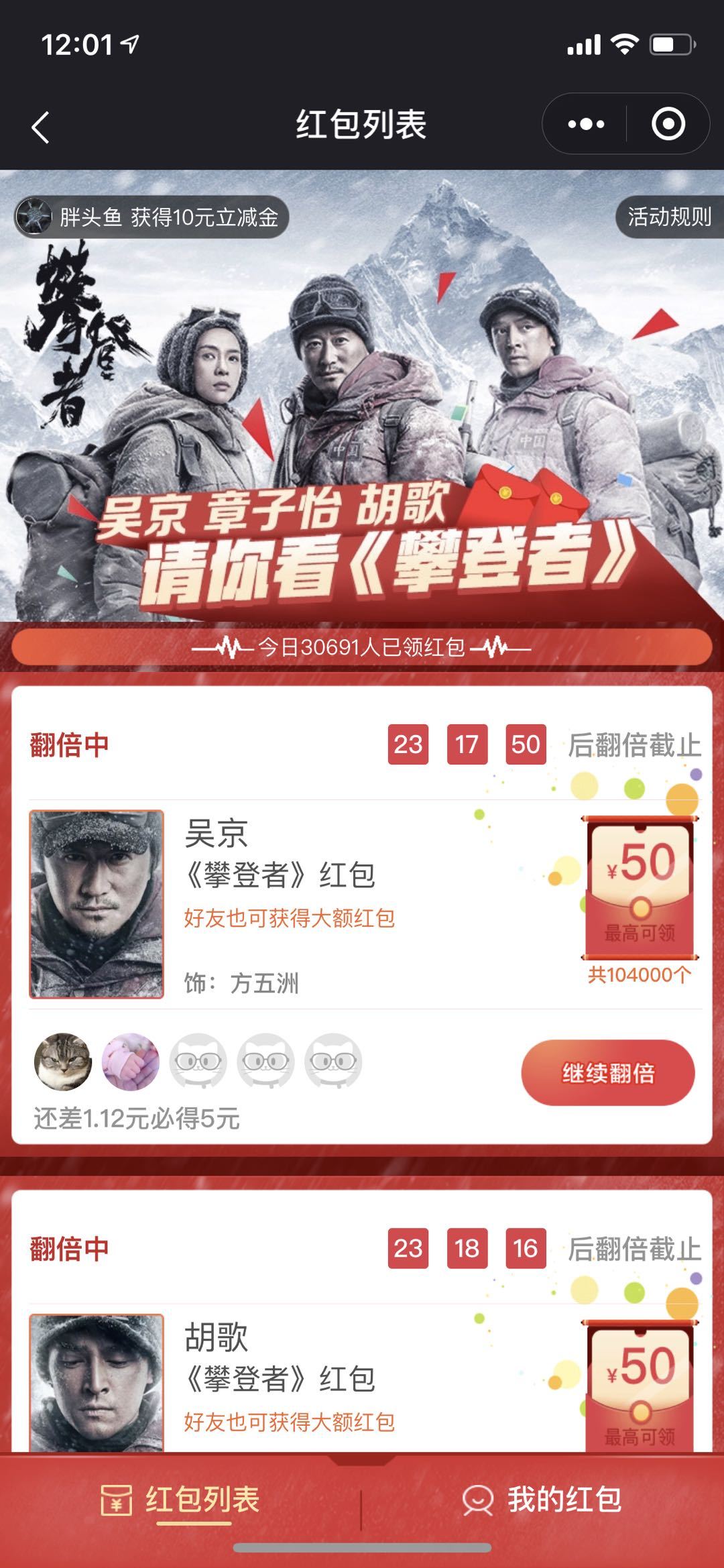 这种以电商运营刺激观众消费的形式,其实猫眼在暑期档就有过成功的实践,为《速度与激情:特别行动》带来了大量的流量。此次国庆大促,更是针对不同影片,有更加丰富的玩法,如用户参与“看预告片领红包”活动,便可领取《攀登者》、《我和我的祖国》的购票红包;或者通过“翻倍红包”活动,可以优惠购买《中国机长》电影票。