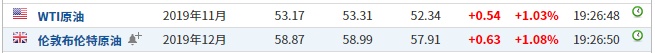 截至发稿,WTI原油涨1.03%,报53.17美元/桶。布伦特原油涨1.08%,报58.87美元/桶。