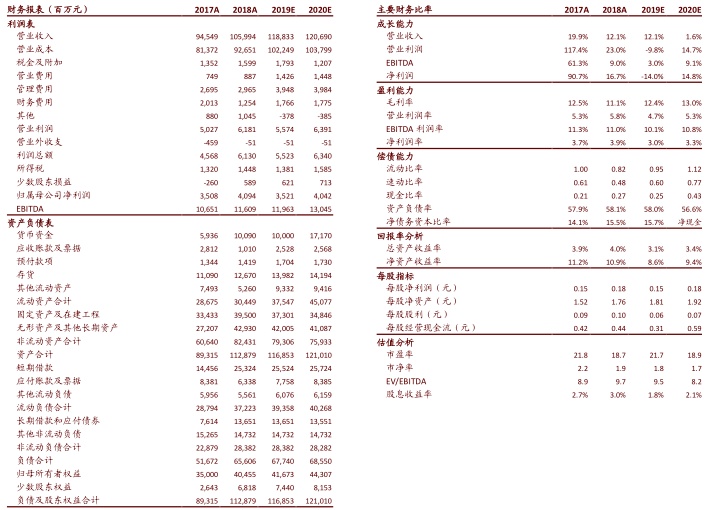 当前 A/H 股股价对应 2020 年 18.9/13.7 倍市盈率。A 股维持跑赢行业评级和 4.10 元目标价,对应 23.4 倍 2020 年市盈率和 23.5%的上行空间。H 股维持跑赢行业评级和 3.80 港元目标价,对应 19.4倍 2020 年市盈率和 41.8%的上行空间。