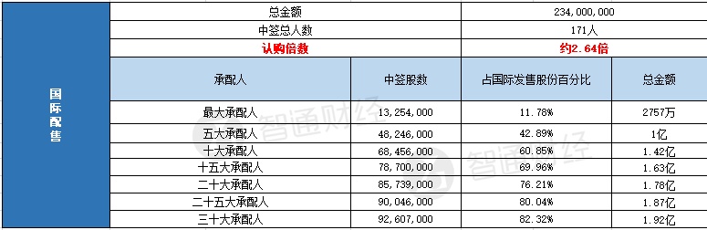 国际配售申购人数171,超购倍数2.64倍。