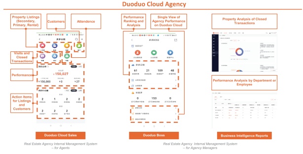 在房多多平台上主要有三种参与者,房产中介、房产买方和卖方。如果对这三种参与者在房多多平台上进行重要性排名,二三名不好说,第一名肯定是中介。以至于房多多的四个产品中有两个都是围绕中介的需求设计的,分别是多多销售(Duoduo Sales)和多多云中介(Duoduo Cloud Agency)。