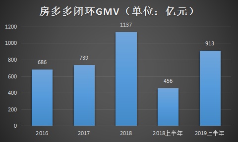 也正是房多多平台上的各种功能渗透进房产中介的各个环节,形成了闭环。即中介从接触客户到佣金结算,均可以在平台上完成。2018年,在房多多平台上闭环总交易量(GMV)为1137亿元人民币,同比增长54%。