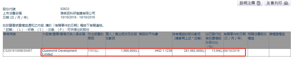 智通财经APP获悉,联交所最新资料显示,10月8号,Queenshill增持雅各臣(02633)100万股,每股作价1.12港元,总金额约为112万港元。增持后持股数目约为2.81亿股,持股比例为13.94%。