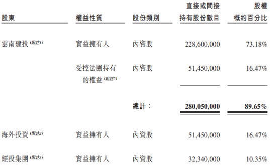 海外投资为第二大股东及国有股东之一。其由云南建投全资拥有。