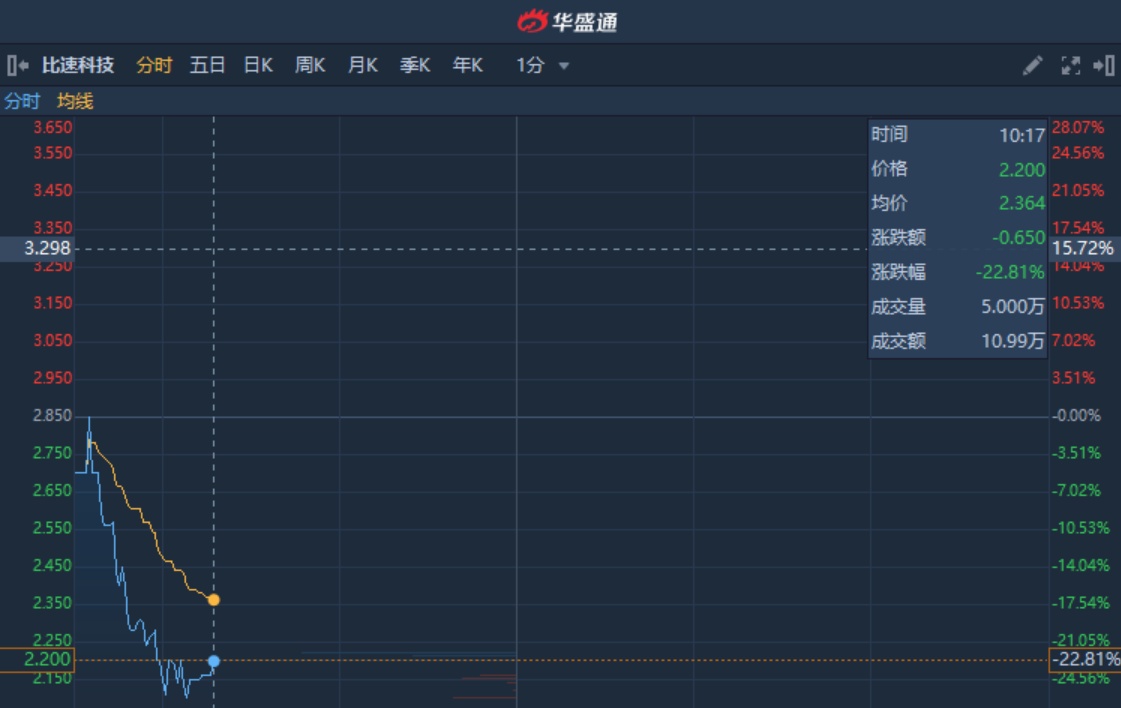 港股异动︱比速科技(01372)再挫22.8% 暂现四连阴累跌超50%