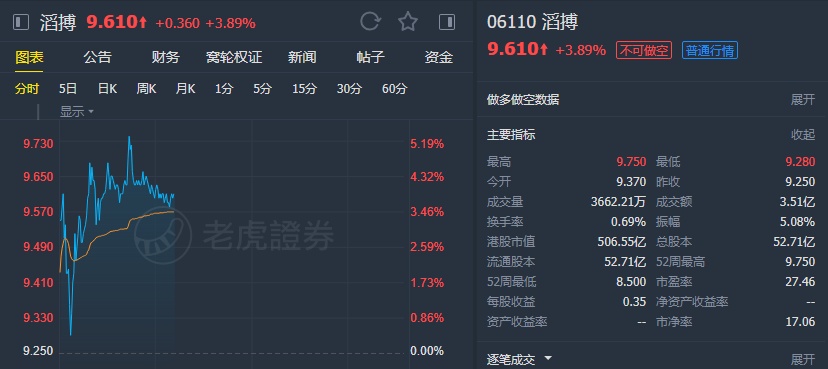 智通财经APP获悉,麦格理发布报告称,首予滔搏(06110)“优于大市”评级,目标价为11.2港元,即较昨日收市价9.25港元,仍有上涨21%的空间。