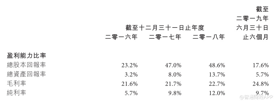 从整体收入水平来看,除2017年收入出现131%的快速增长外,公司2018财年及2019年中期分别实现29.22%及25.69%的增速,分别实现收入337亿元及1.76亿元人民币,整体维持较为稳定的水平。