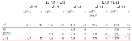 从销售地区来看,海纳智能装备由2016年以于中国市场为主要市场销售,向海外市场拓展转型。其中,东南亚地区为公司主要拓展地区。截至2019年6月30日止6个月,公司于越南、印度尼西亚、菲律宾的收入占比合计达35.8%,东南亚市场成为公司第二大销售市场。