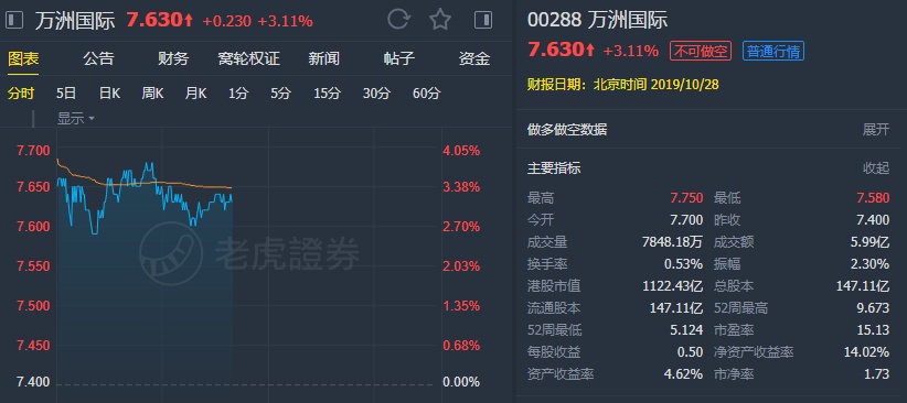 该行指出,万洲国际经历连续四个季度下滑后,预计公司今年第三季度营运溢利可同比增长28%,主要是美国业务强劲,预计美国业务可贡献溢利1.67亿美元(对比2018年第三季7,600万美元)。