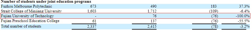从招股书披露的资料可以发现,2018年学生人数同比下降17%,2019上半年同比下降3.2%。从上表可以发现,华夏博雅的中外联合管理学术课程收入全部来自福建四所学校。再进一步挖掘,2019上半年福建工程学院在该课程项目的招生人数为0人。